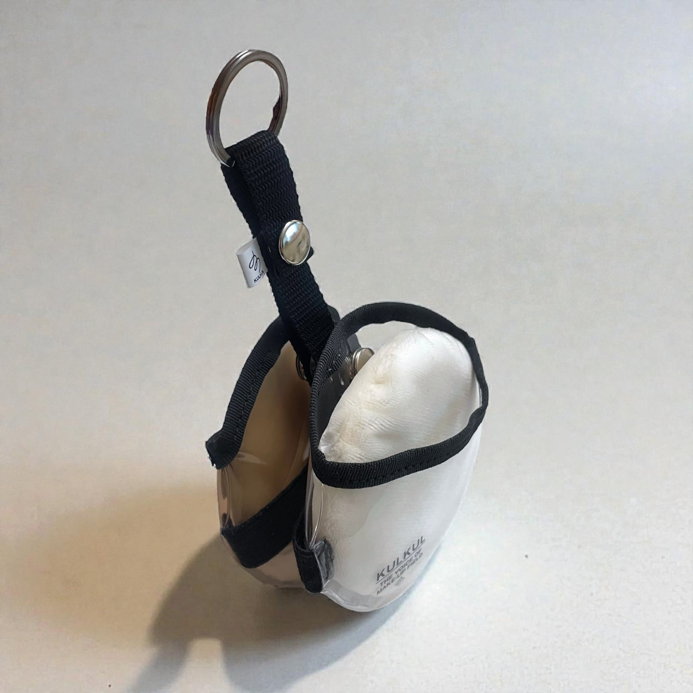 KULKULパフケースの入り口を、上向きに装着できるので小さいパフをお使いのヘアメイクさんんもパフが飛び出しちゃう心配がありません。